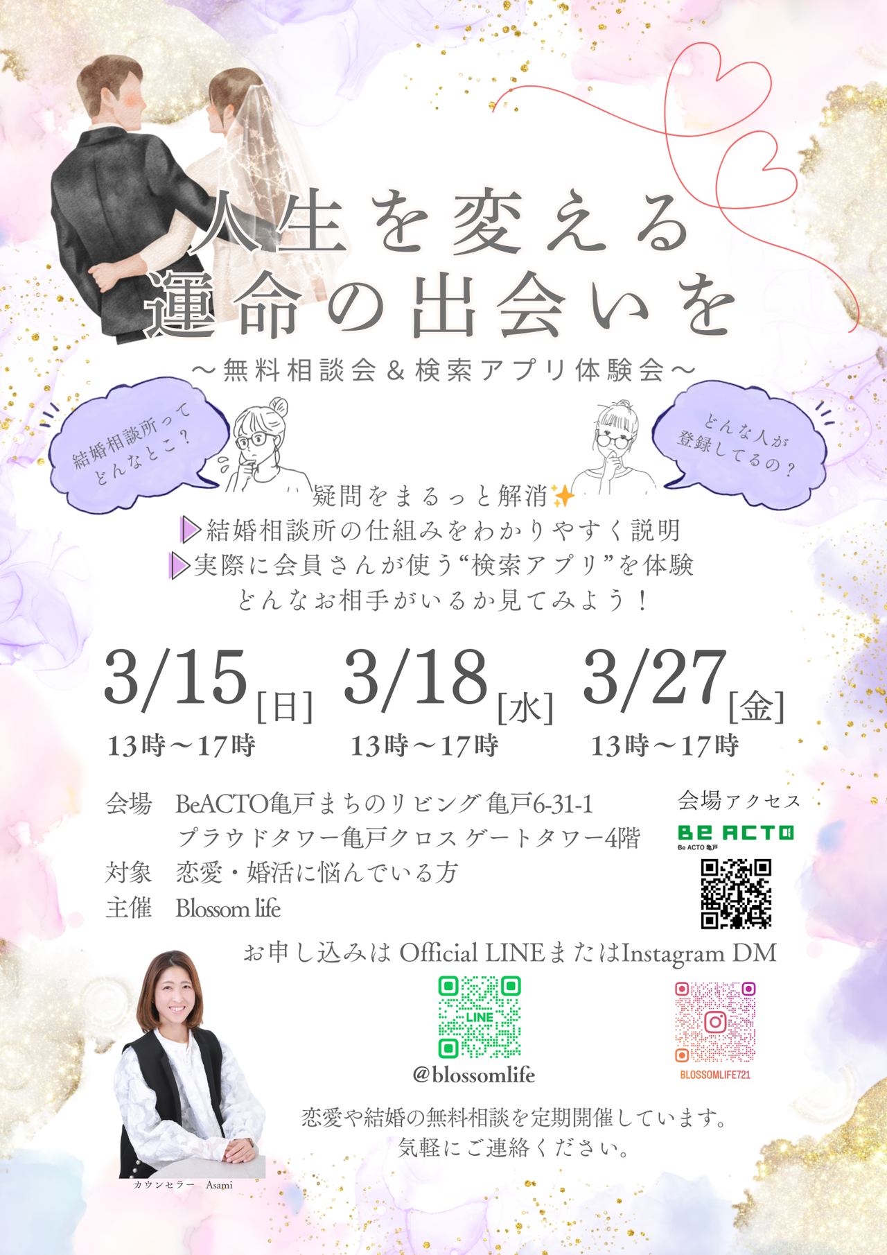 Blossom Life 結婚相談所が開催するイベントの情報をご紹介します。